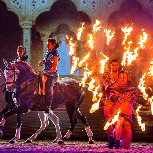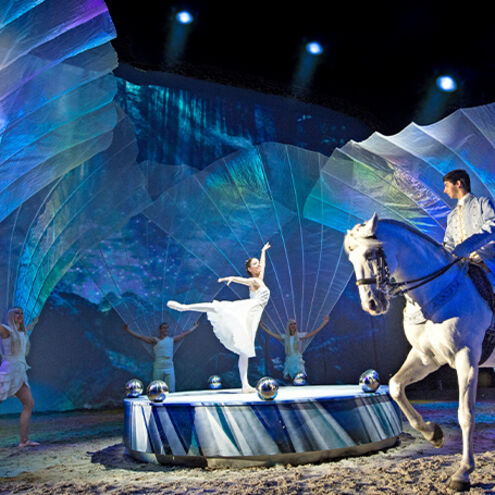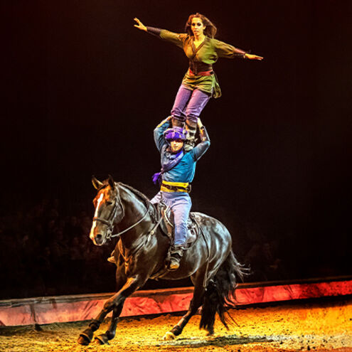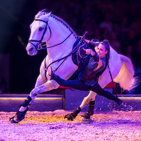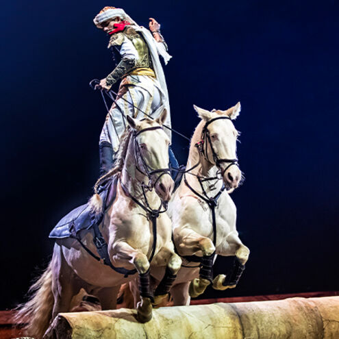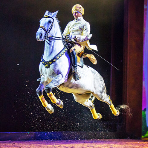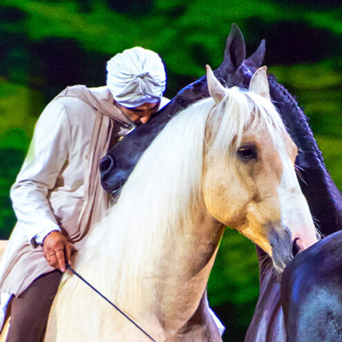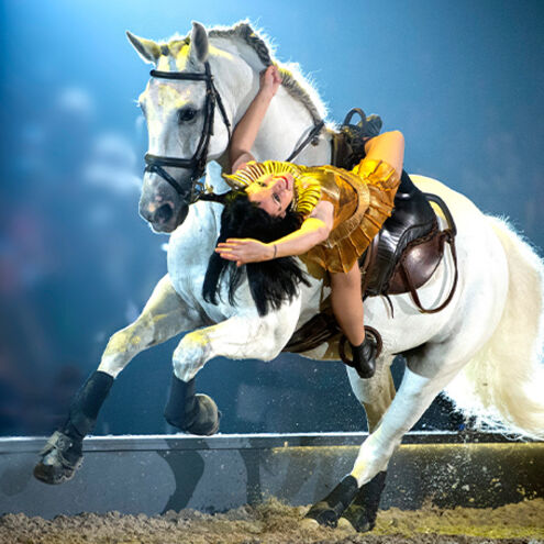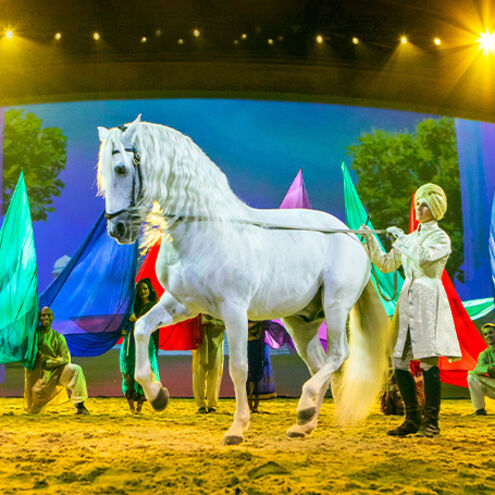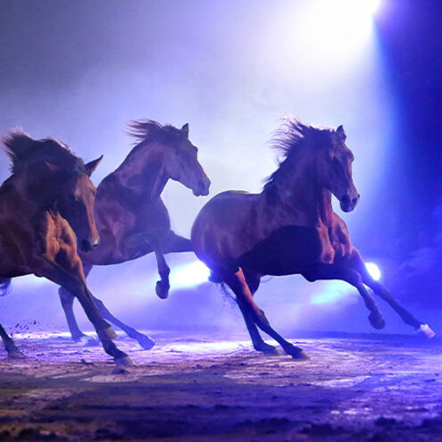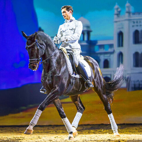 Lassen Sie sich verzaubern von grandiosen Schaubildern, raffinierten Choreografien und natürlich vor allem einem: knapp 60 wunderschönen Pferden. Mit an Bord sind die besten und bekanntesten Reitteams aus ganz Europa, die ihr Können und ihre Vielfältigkeit in den verschiedensten Disziplinen unter Beweis stellen. Freuen Sie sich auf feurige Andalusier aus Spanien, atemberaubende Trickreiter aus Frankreich und edle schwarze Friesen aus Deutschland. Auch tief berührende Freiheitsdressuren, eine spektakuläre Ungarische Post und freche Miniponys dürfen natürlich nicht fehlen. Abgerundet werden die mitreißenden Showeinlagen von einer hochtalentierten, internationalen Tanzkompanie und spektakulären Spezialeffekten – eine abenteuerliche Reise der Sinne ist garantiert!