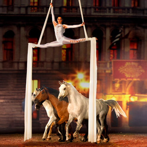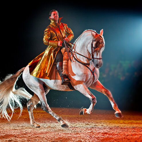 Knapp 60 Pferde, atemberaubende Tanzeinlagen, mitreißende Musik und ein traumhaftes Kostüm- und Bühnenbild faszinieren Groß und Klein und zeigen eindrücklich, warum CAVALLUNA nicht nur eine Show für Pferdebegeisterte ist, sondern ein einzigartiges Gesamtkunstwerk für die ganze Familie. Tauchen Sie ein in eine Welt voller Lichter, Farben, spannender Show-Acts und bewegender Momente.