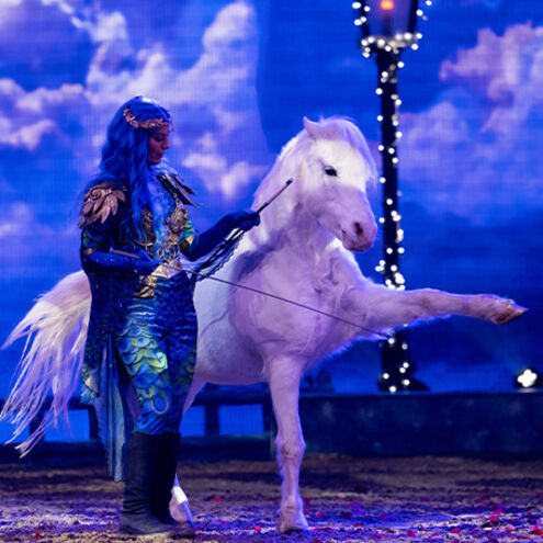 The unforgettable event for the whole family takes place at SHOWPALAST MUNICH, a location with a special flair. The unique theatre on the grounds of the CAVALLUNA Park has Europe's largest permanently installed LED wall and will be given a special stage set-up especially for the winter show "CAVALLUNA Kids - WinterWünscheLand" in order to bring big and small spectators as close as possible to the action. The whole thing is rounded off by wintery, festive decorations, spectacular lighting design and sensational special effects that support the scenes in an impressive way.