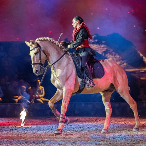This show format is a program specially designed for families and, as usual, relies on the popular combination of horsemanship, drama and music. The show combines spectacular as well as funny and touching moments and is through the interactive involvement of parts of the audience all the best entertainment for young and old.