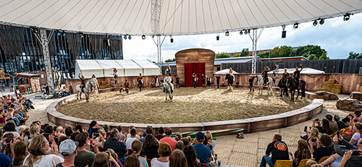 Nachdem die CAVALLUNA-Kids-Sommershows die ersten zwei Jahre draußen stattfanden, ist das Programm inzwischen in den wettergeschützten SHOWPALAST umgezogen, das einzigartige Theater auf dem Gelände des CAVALLUNA Parks: Es verfügt über Europas größte festinstallierte LED-Wand, die jeder Szene ein ganz besonderes Flair verleiht. Außerdem wird das fröhliche Geschehen auf der Bühne natürlich von einem magischen Lichtdesign, spektakulären Spezialeffekten und einem beeindruckenden Bühnenbild unterstützt. So spielt es keine Rolle mehr, ob es draußen heiß ist oder in Strömen regnet – der Sommerspaß kann beginnen!