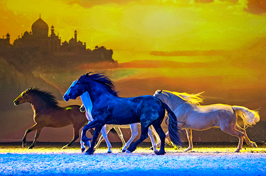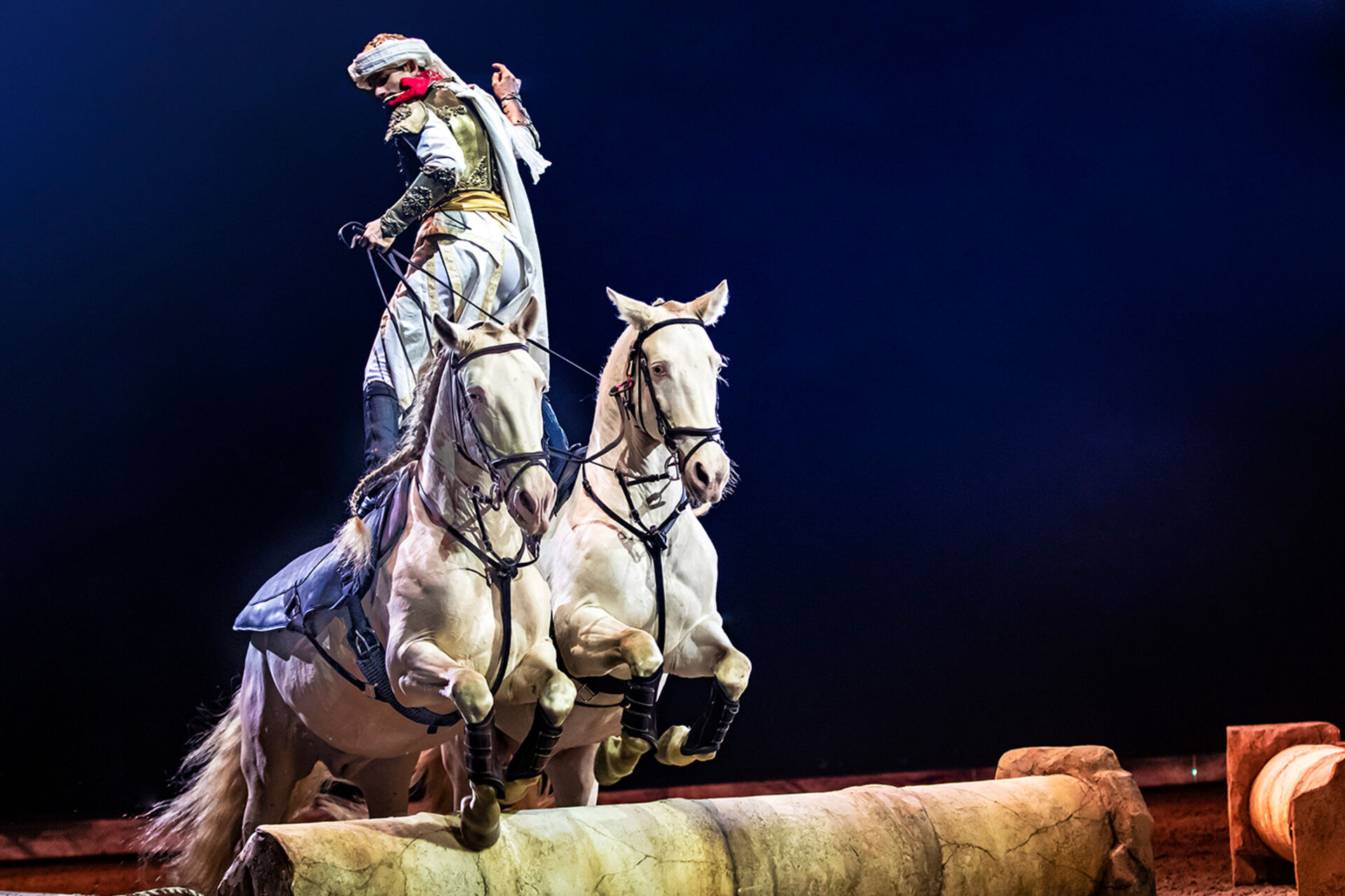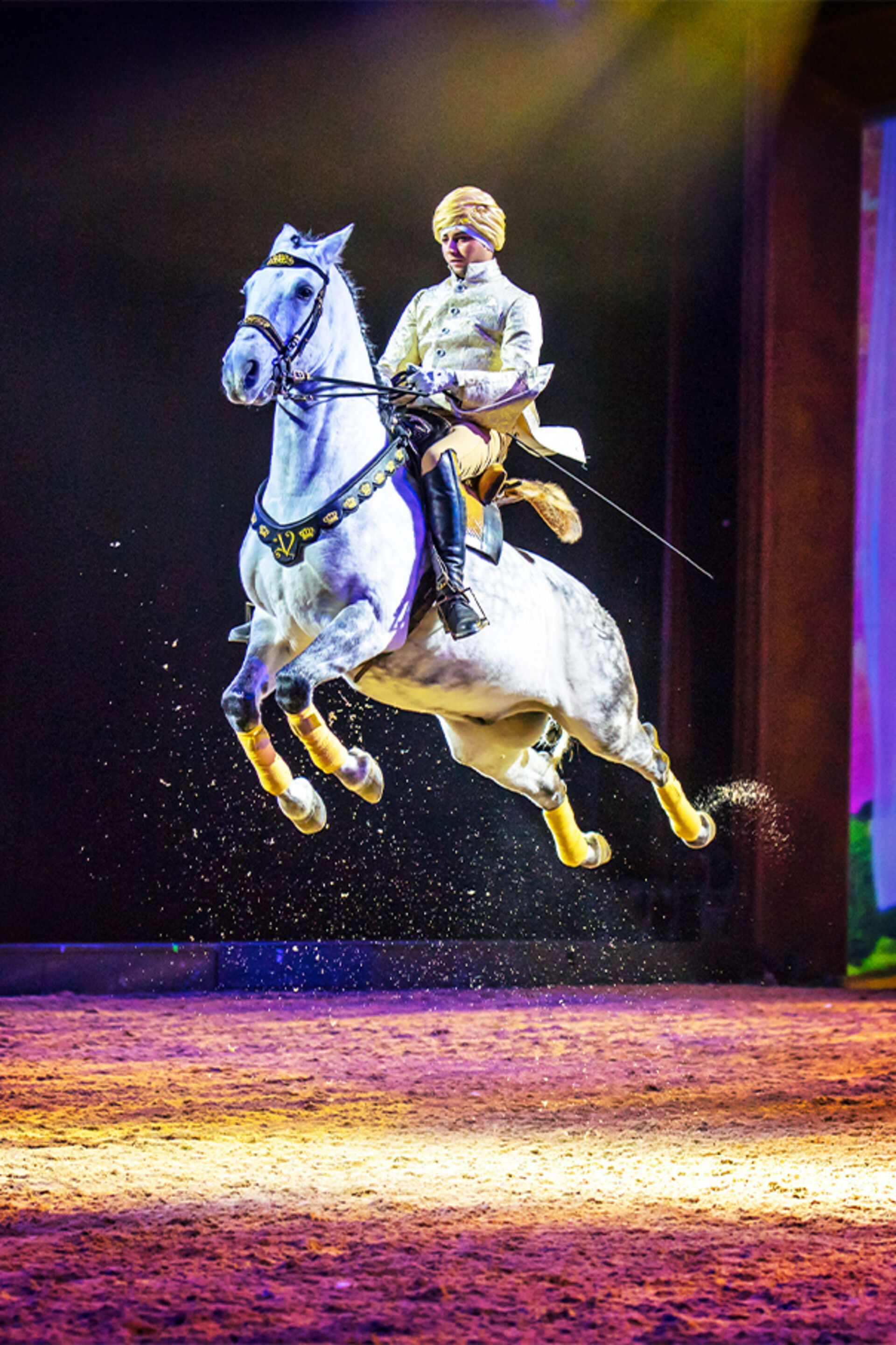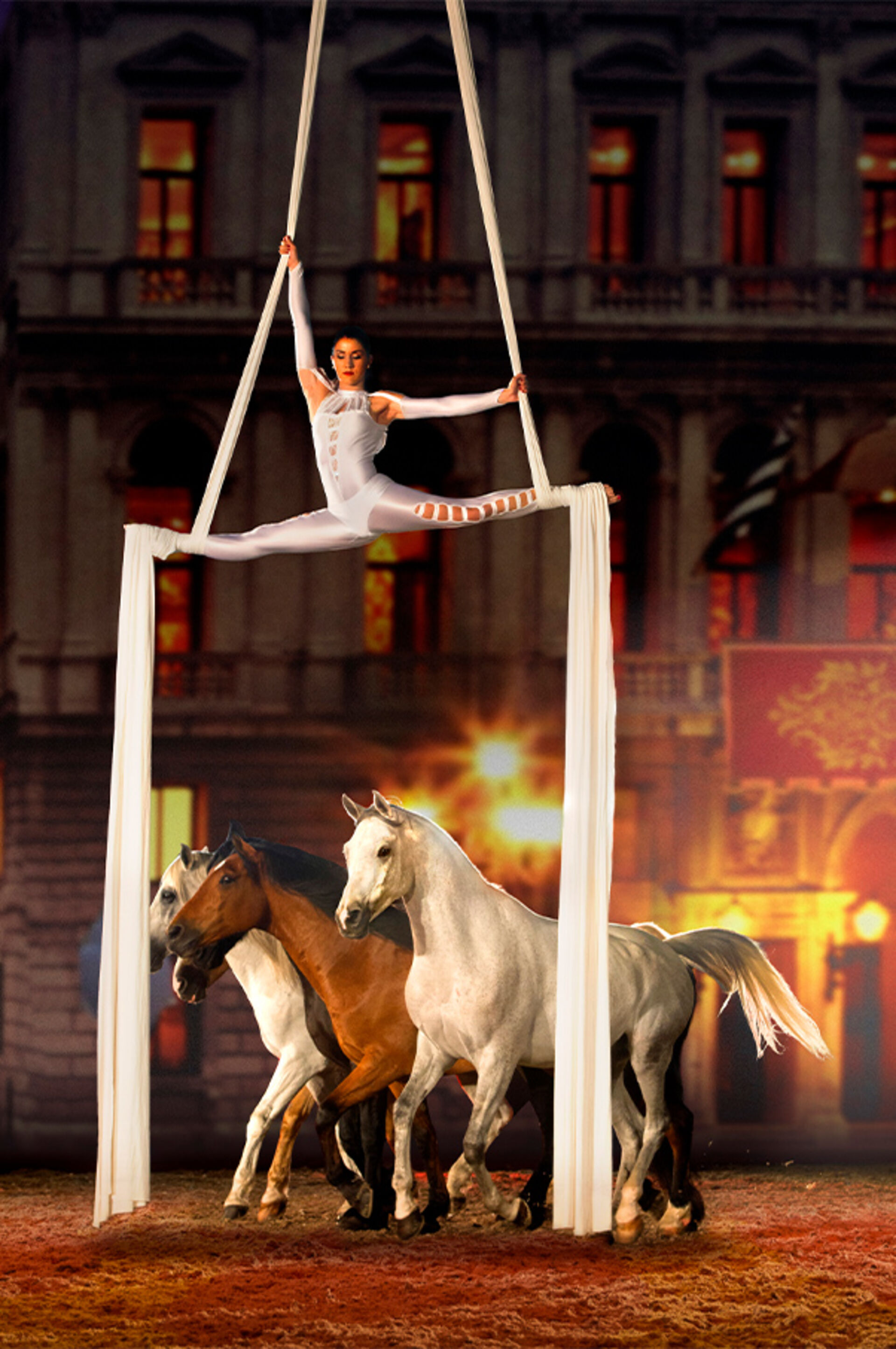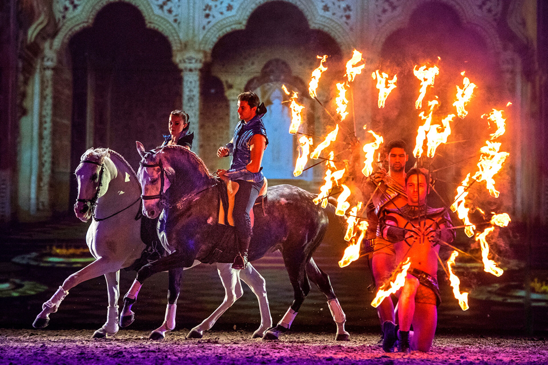 Be enchanted by magnificent scenes, sophisticated choreography and, of course, one thing above all else: almost 60 beautiful horses. The best and most famous riding teams from all over Europe will demonstrate their skills and versatility in a wide variety of equestrian disciplines. Look forward to fiery Andalusians from Spain, breathtaking trick riders from France and elegant black Friesians from Germany. Deeply moving liberty numbers, a spectacular Hungarian Post and cheeky mini ponies are also a must. Their thrilling performances are rounded off by a highly talented international dance company and spectacular special effects – an adventurous journey for the senses is guaranteed!
